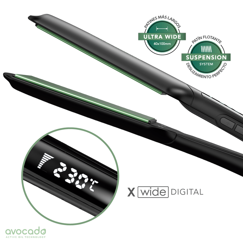 Lucí un cabello más sano, brillante y protegido gracias a los beneficios de los aceites esenciales. La línea Avocado es la opción ideal para quienes buscan un alisado eficaz sin dejar de cuidar la salud de su cabello. Gracias a la Active Oil Technology, la GA.MA X-Wide Digital Avocado incorpora en la cobertura de sus patines y rejillas aceite de aguacate y macadamia, ricos en antioxidantes y vitamina E, que aportan nutrición, resistencia y luminosidad.